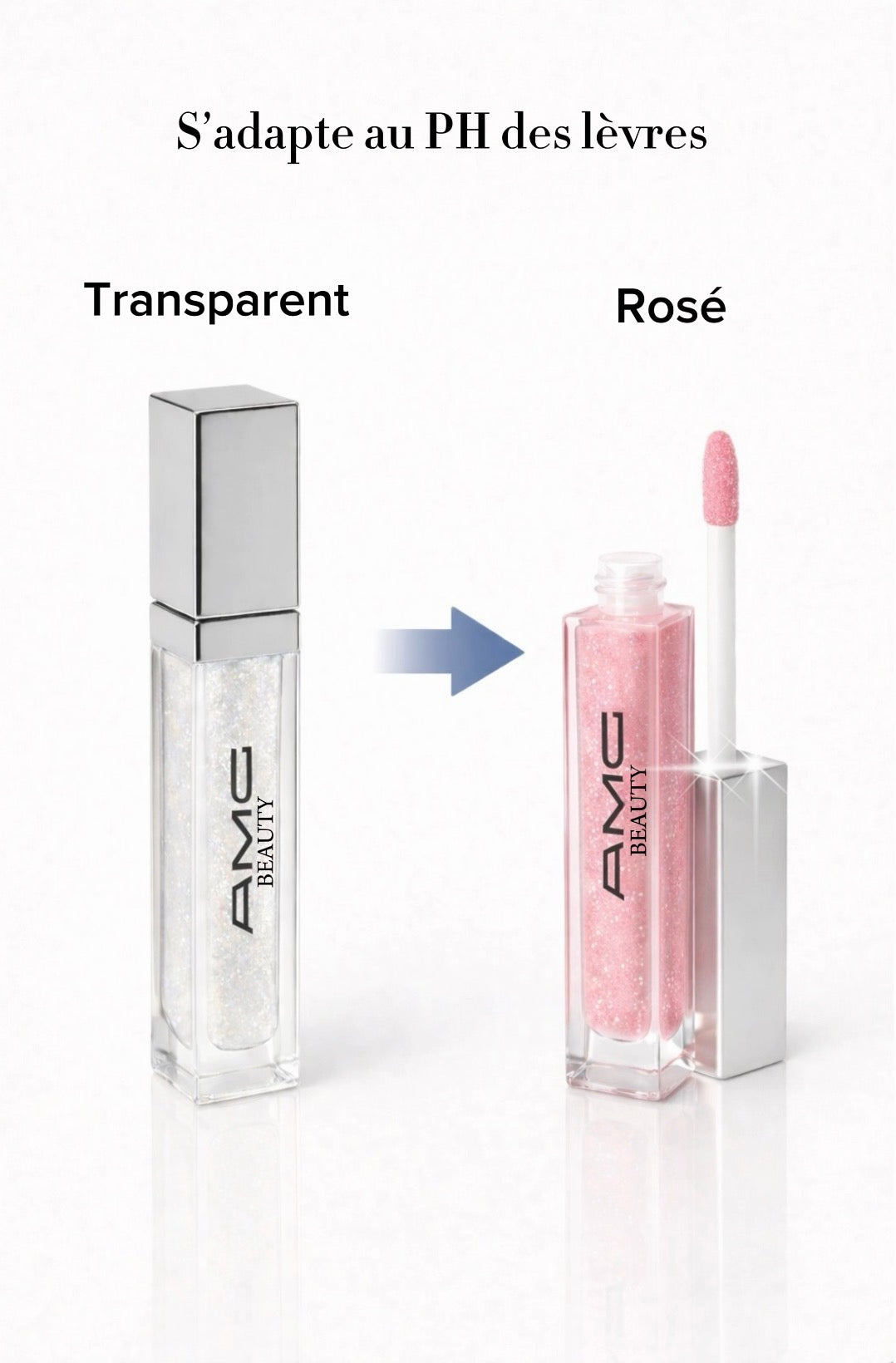 Ton gloss transparent pailletée qui se transforme en un rose sur-mesure au contact du pH de tes lèvres, révélant une couleur unique, fraîche et lumineuse propre a toi.